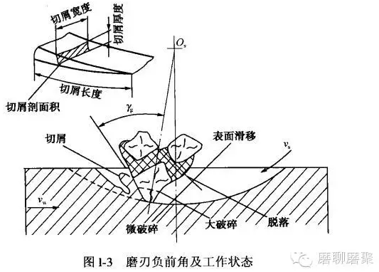 2.砂轮上的磨刃前角为负值,形成负前角切削