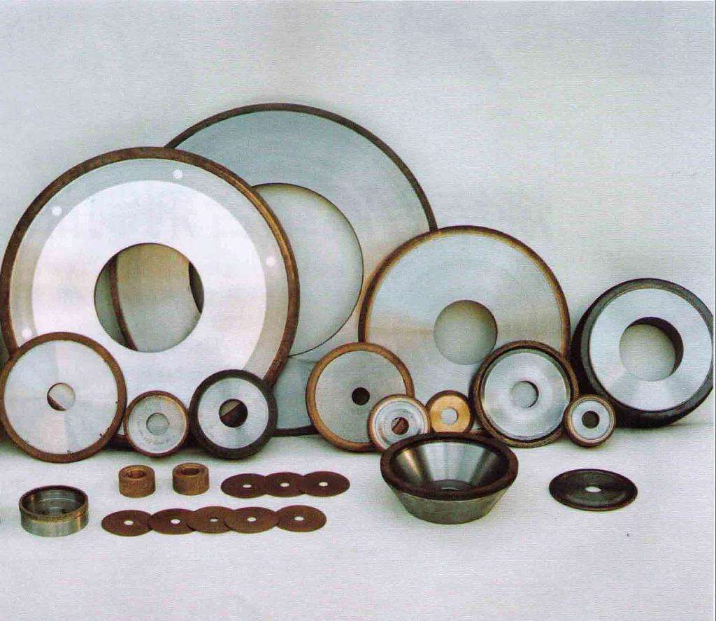 以金刚石磨料为原料,分别用金属粉、树脂粉、陶瓷和电镀金属作结合剂,制成的中央有通孔的圆形固结磨具称作金刚石砂轮(合金砂轮)。