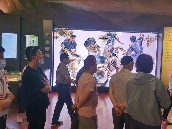 我们首先参观了陕甘边革命根据地照金纪念馆。庄严肃穆的陕甘边革命根据地照金纪念馆,气势雄壮,如磅礴厚重的革命史诗,大家被展馆内上下两层翔实的历史资料、图片、文物和刘志丹、谢子长、习仲勋等百余位老一辈无产阶级革命家的大幅油画所吸引,长长的驻足,静静地观看,深情地交流,发生在这片红土地波澜壮阔的历史画卷就这样徐徐展开,大家仿佛看见了革命先辈创建以照金为中心的陕甘边革命根据地的艰难历程,仿佛听到了当年那隆隆的战火轰鸣,仿佛真正触摸到了那一段不同寻常的峥嵘岁月。党员们的心在剧烈的跳动,对先辈的敬仰油然而生,伟大的照金精神闪烁着耀眼的光芒。