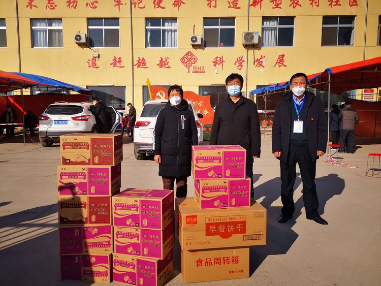 的阎良区新兴街道办万南村防疫点的防疫人员送去了方便面,饼干,副食等慰问品,表现企